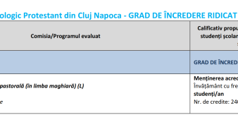 În cadrul ședinței din 28 decembrie 2021, ARACIS a acordat Institutului Teologic Protestant din Cluj-Napoca calificativul "grad de încredere ridicat". |