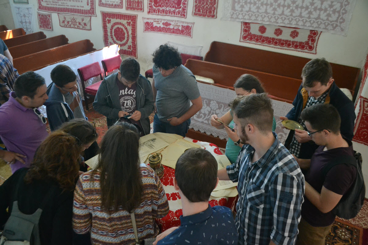 Elsőéves hallgatók az egeresi gyülekezet értékes irattárát szemlézik